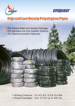 HDPE pipes are produced for Telecommunication systems with 6.0 bars working pressure, according to DIN 8074/8075.