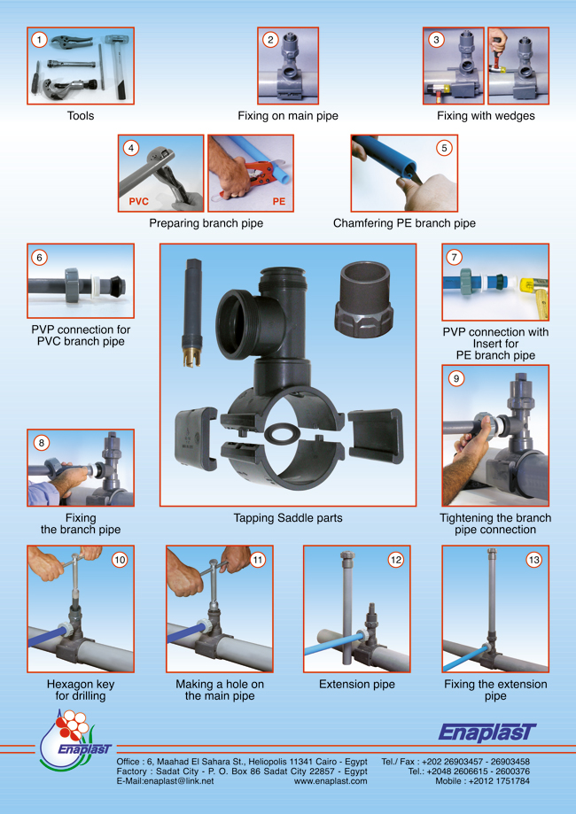ENAPLAST manufactures the PVC-U Tapping Saddle with Valve and Integral Cutter for House Connections, a unique product for Tapping under Life Conditions. The PVC-U Tapping Saddle is equipped with a Brass Cutter embedded into the Valve Stem.